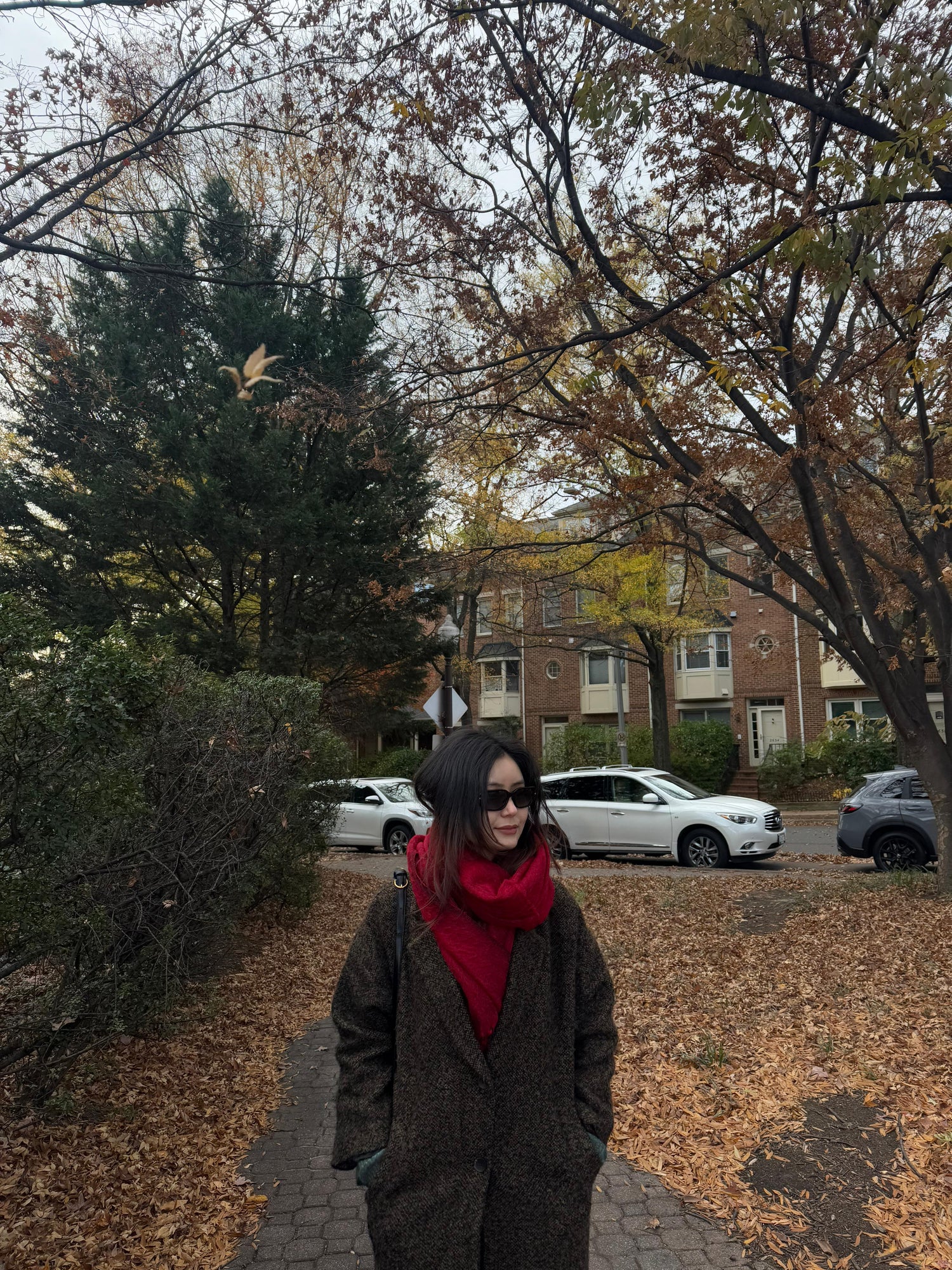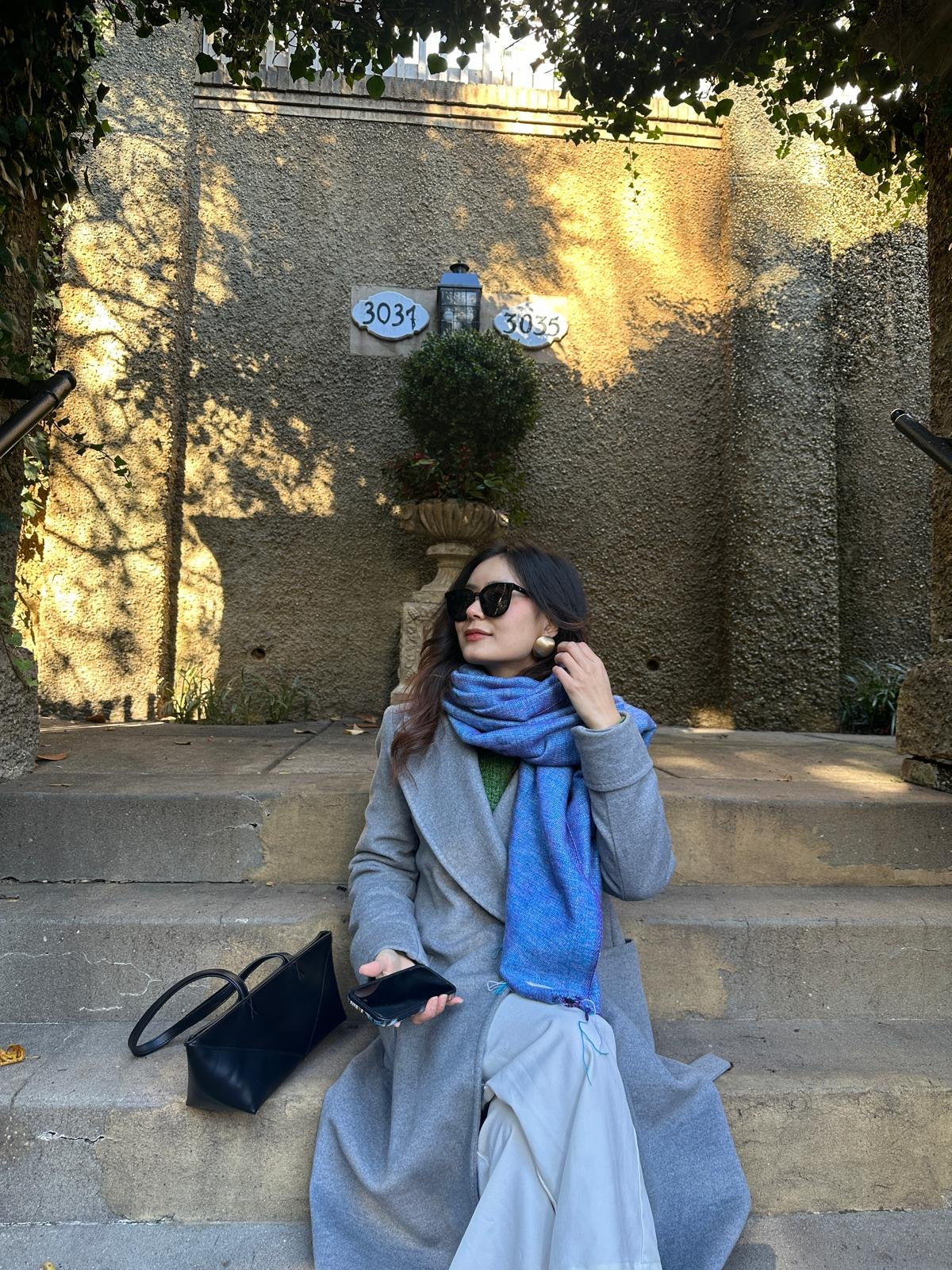 "This scarf has become my cold-weather signature. Wrapped over my grey coat, it adds warmth and a touch of sophistication that makes even a simple winter outfit feel pulled-together."