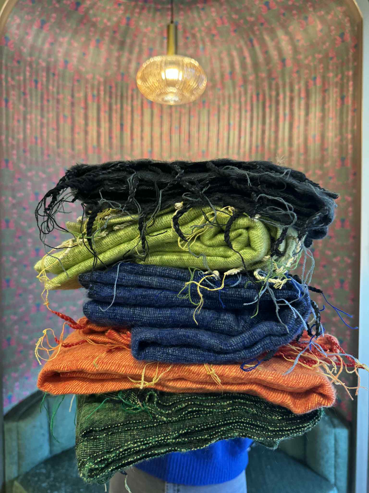 Our shawls are made in Nepal, right in the heart of the Himalayas. We use only Himalayan wool - the finest wool that comes from the high mountains of Nepal and is hand loomed by local women in Nepal.