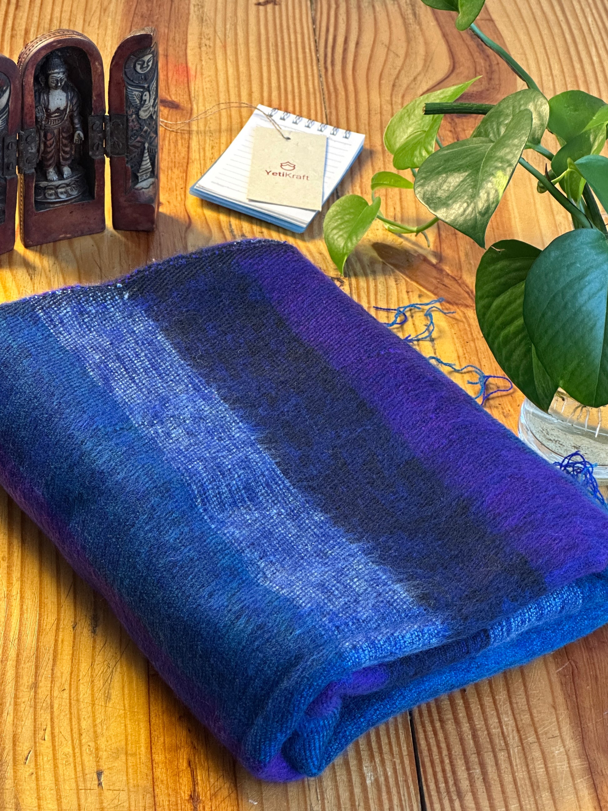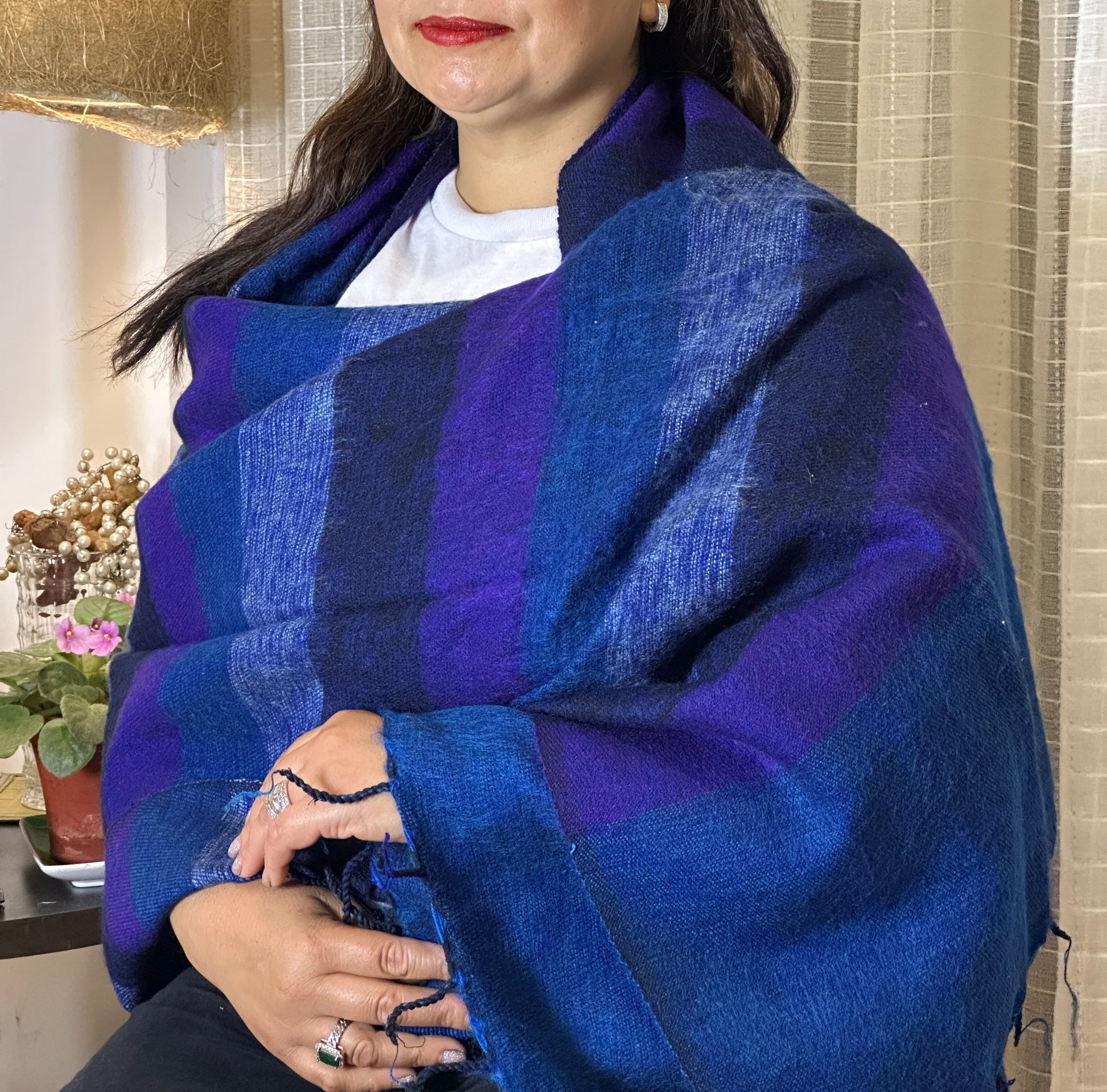 The scarf is made up of Yak wool, a special type of wool found in the underbelly of mountain buffalo. The wool is naturally warm and soft.