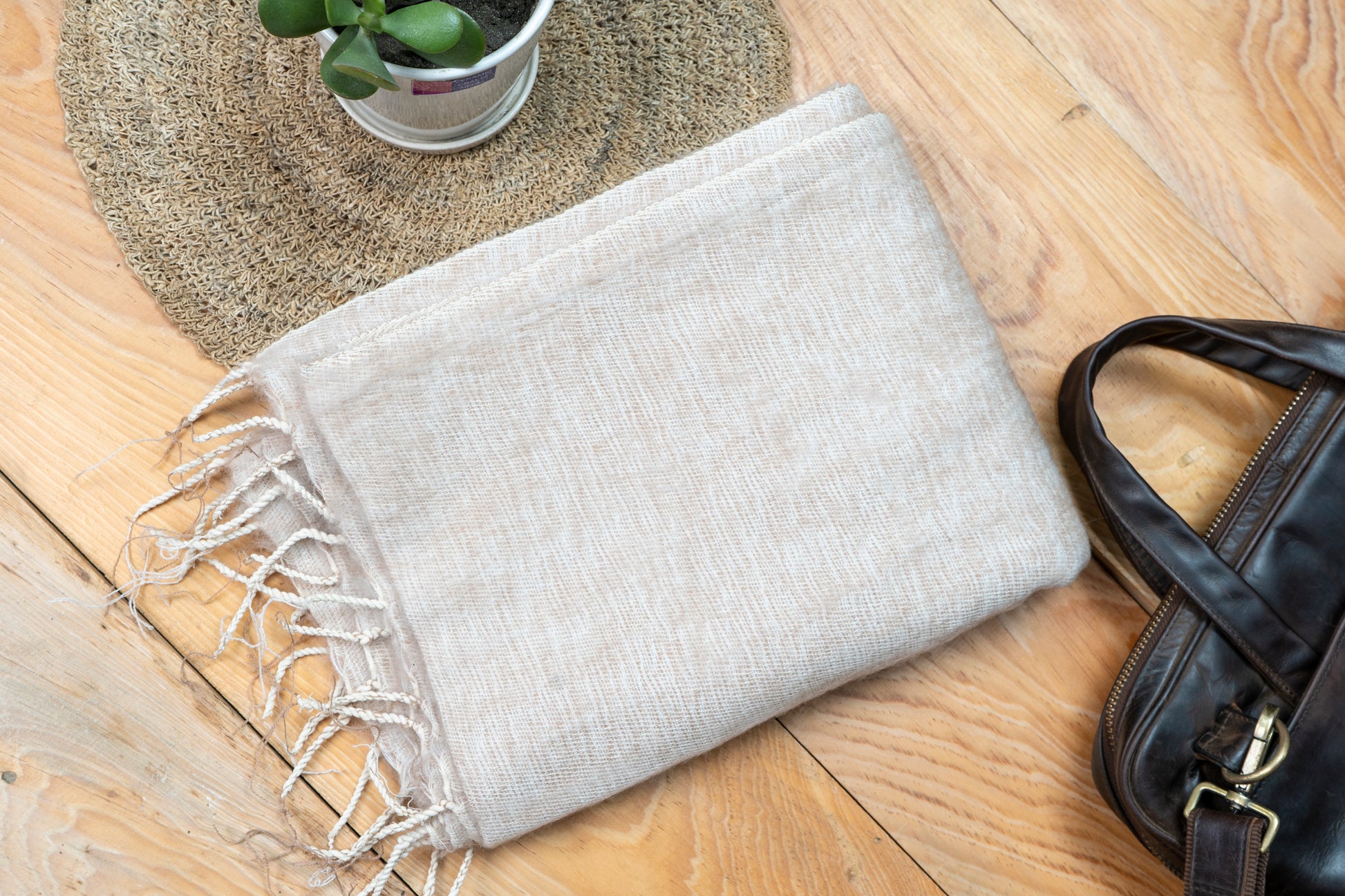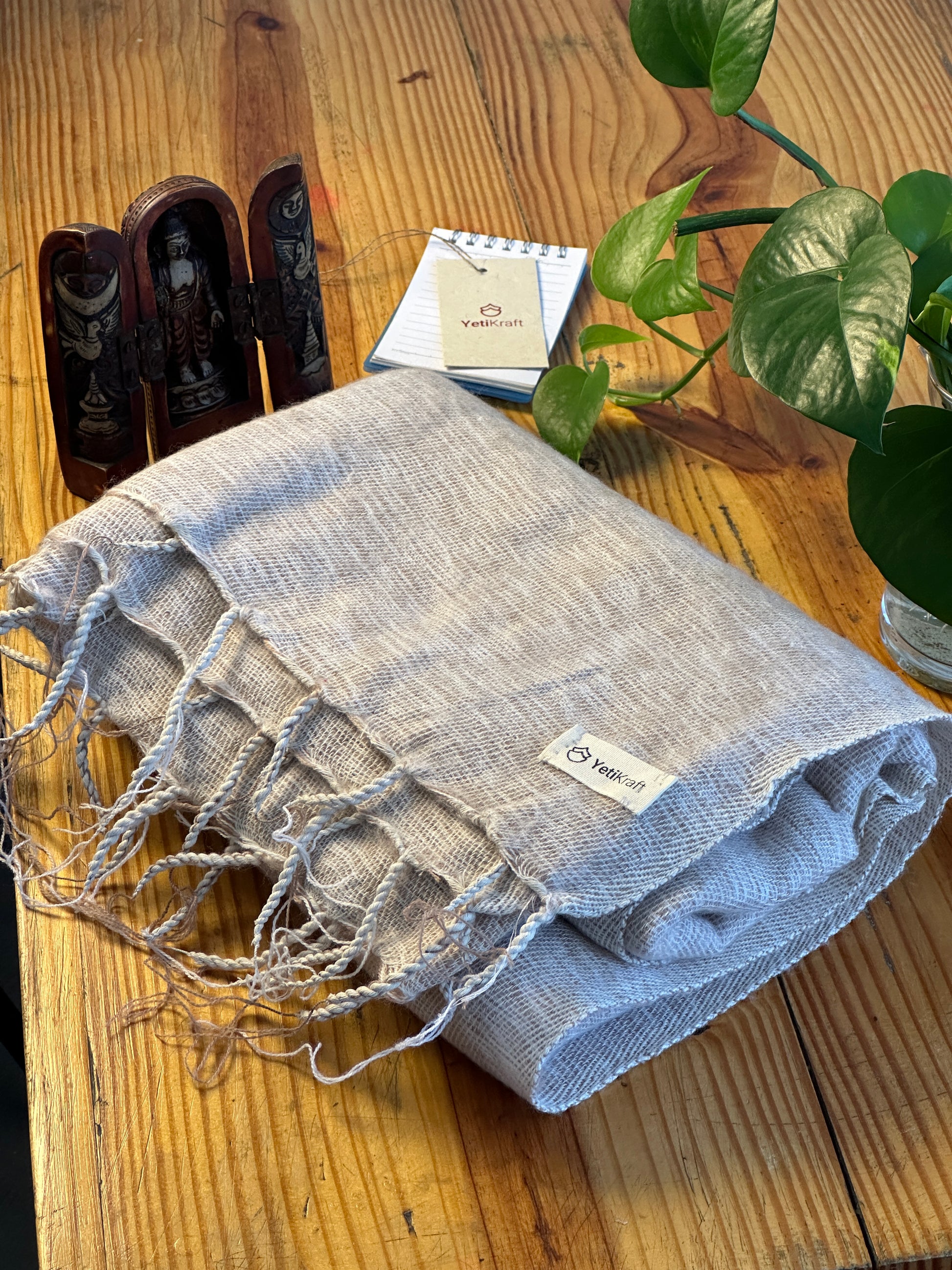 The scarf is made up of Yak wool, a special type of wool found in the underbelly of mountain buffalo. The wool is naturally warm and soft.