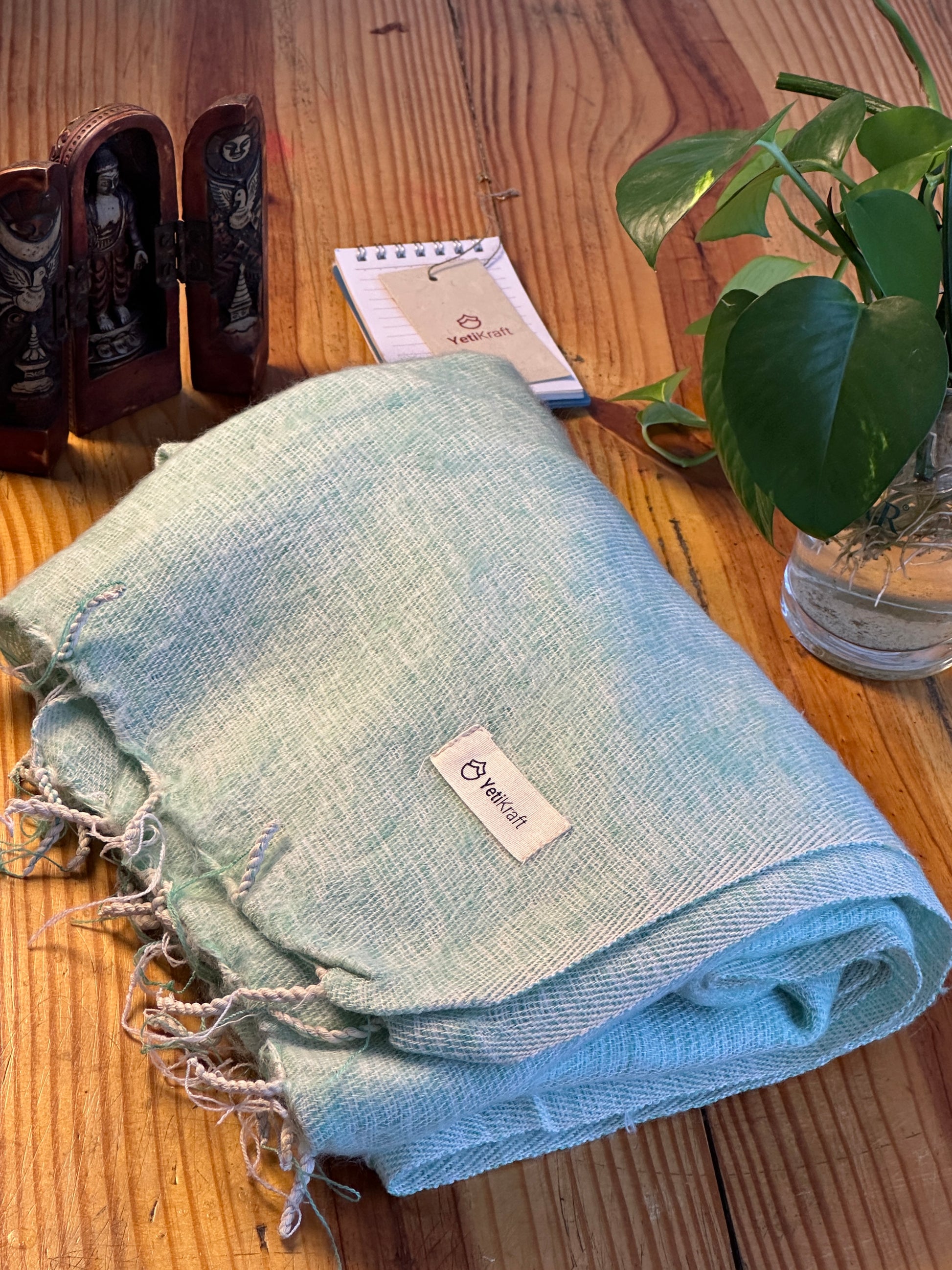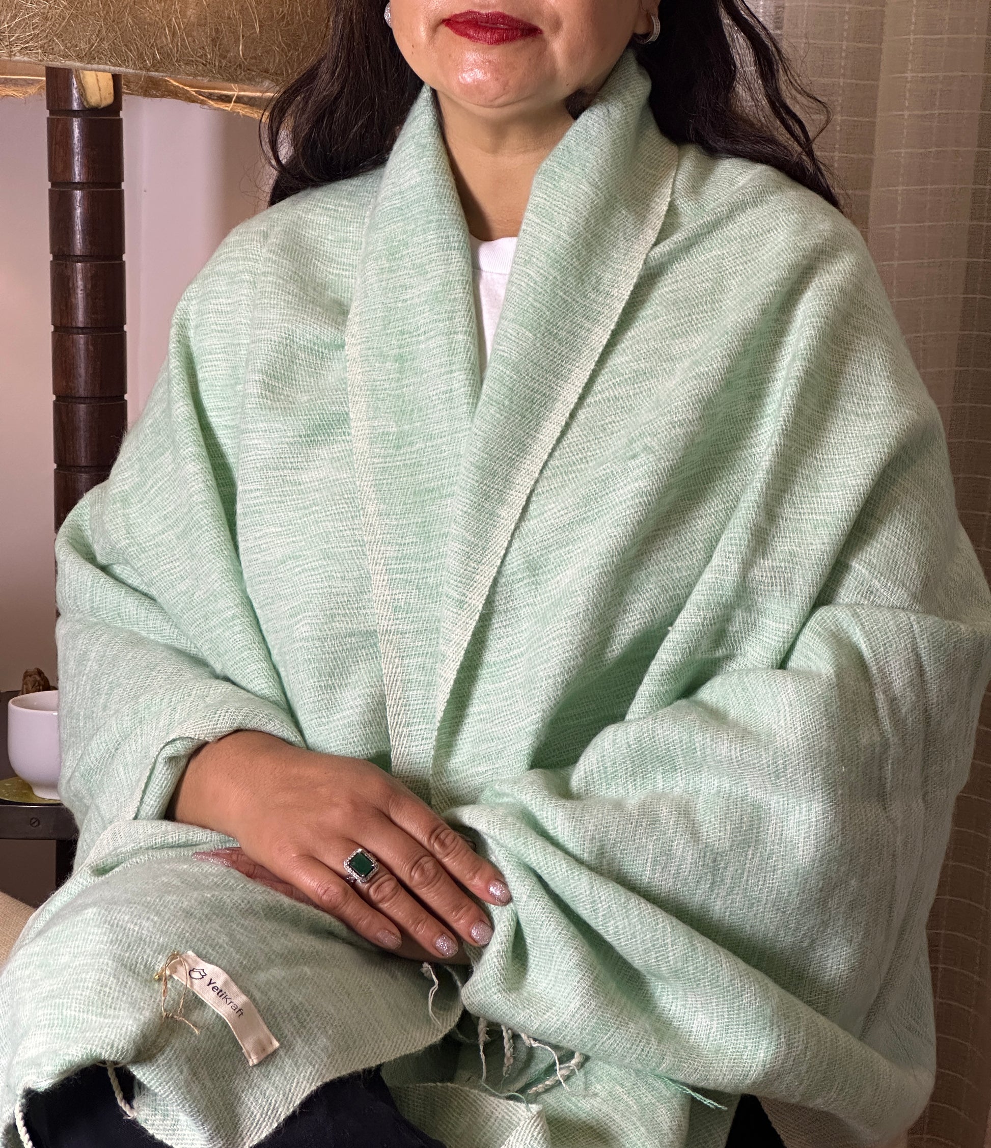 The scarf is made up of Yak wool, a special type of wool found in the underbelly of mountain buffalo. The wool is naturally warm and soft.