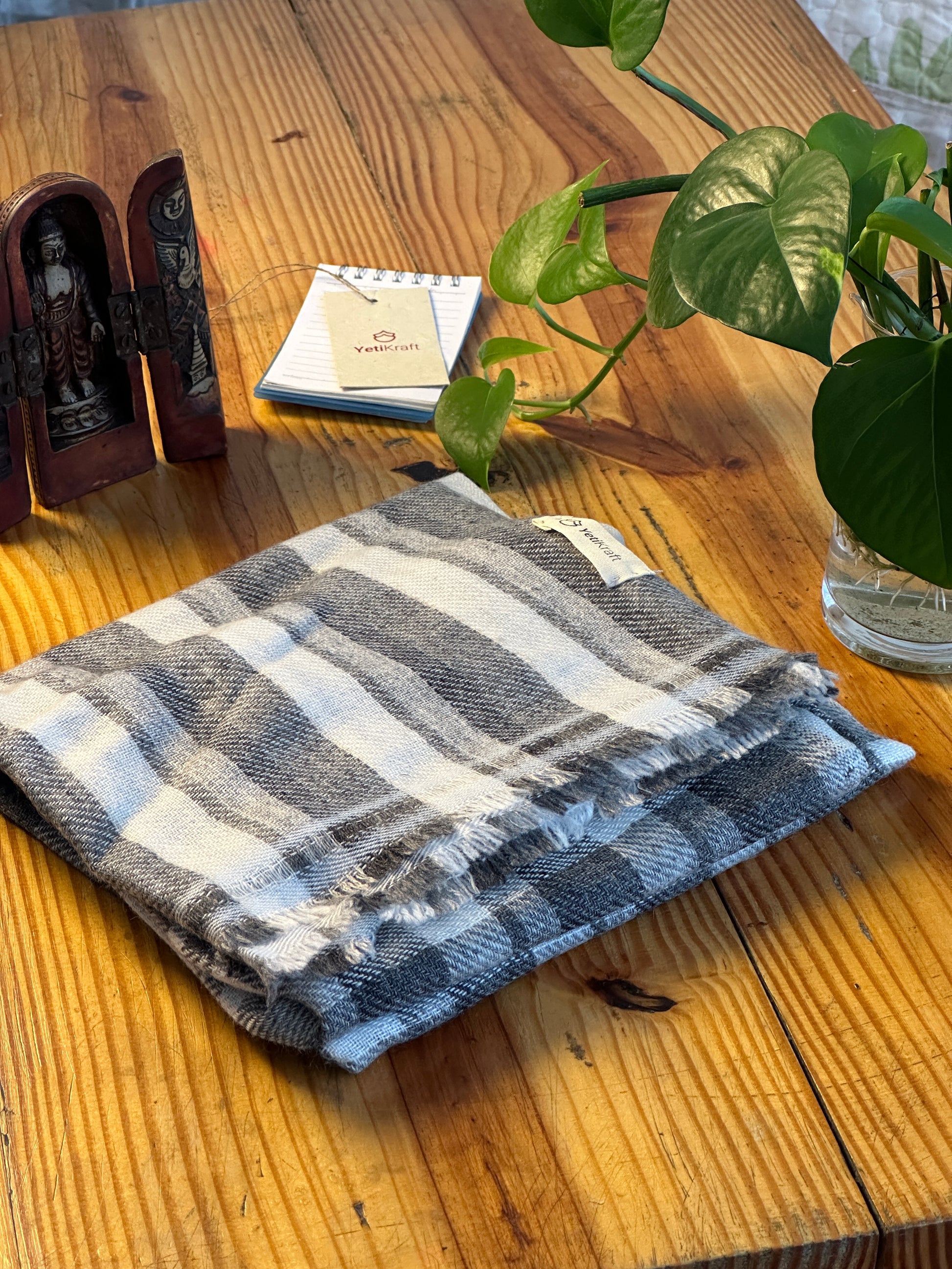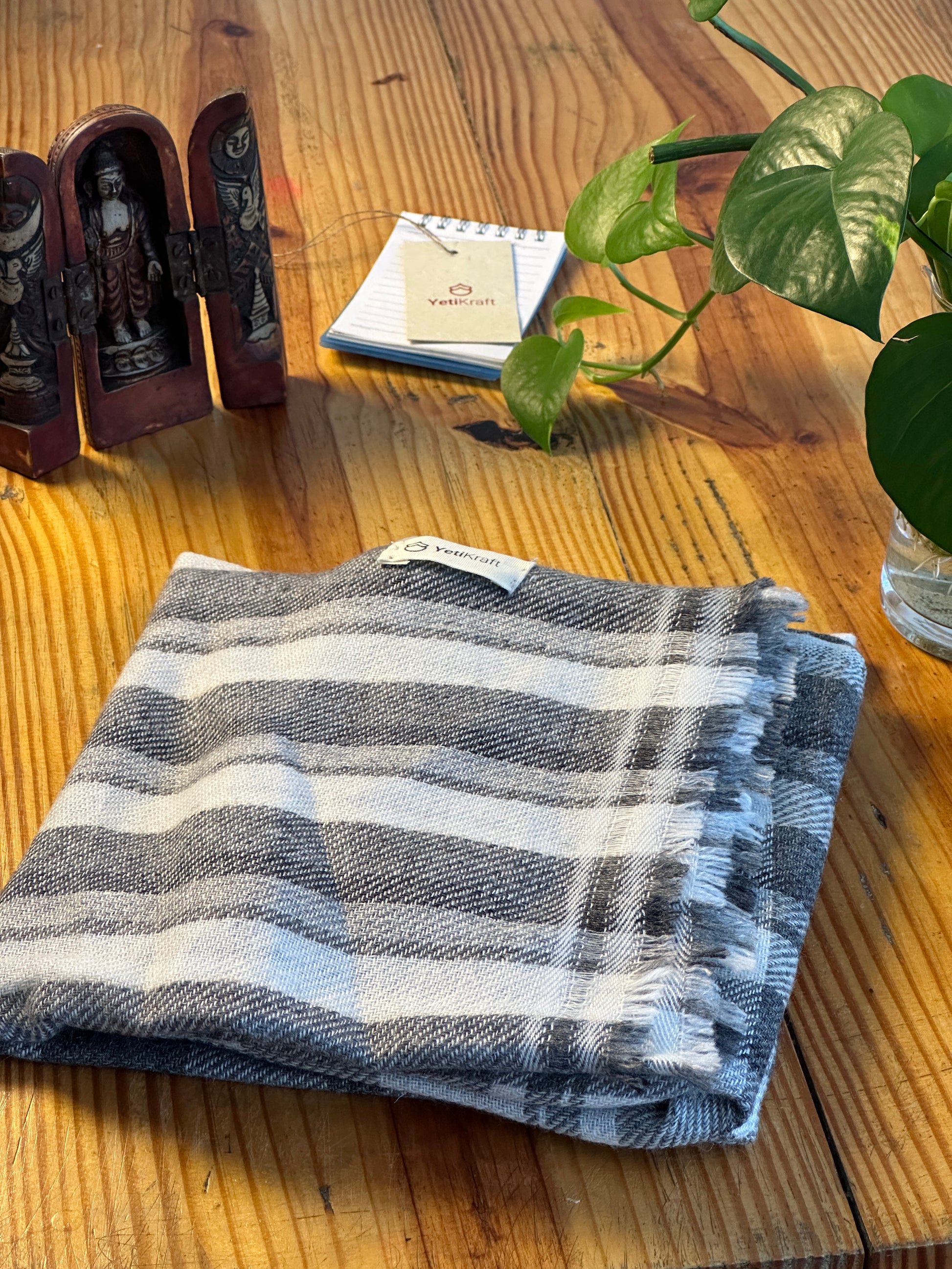 The scarf is made up of Yak wool, a special type of wool found in the underbelly of mountain buffalo. The wool is naturally warm and soft.