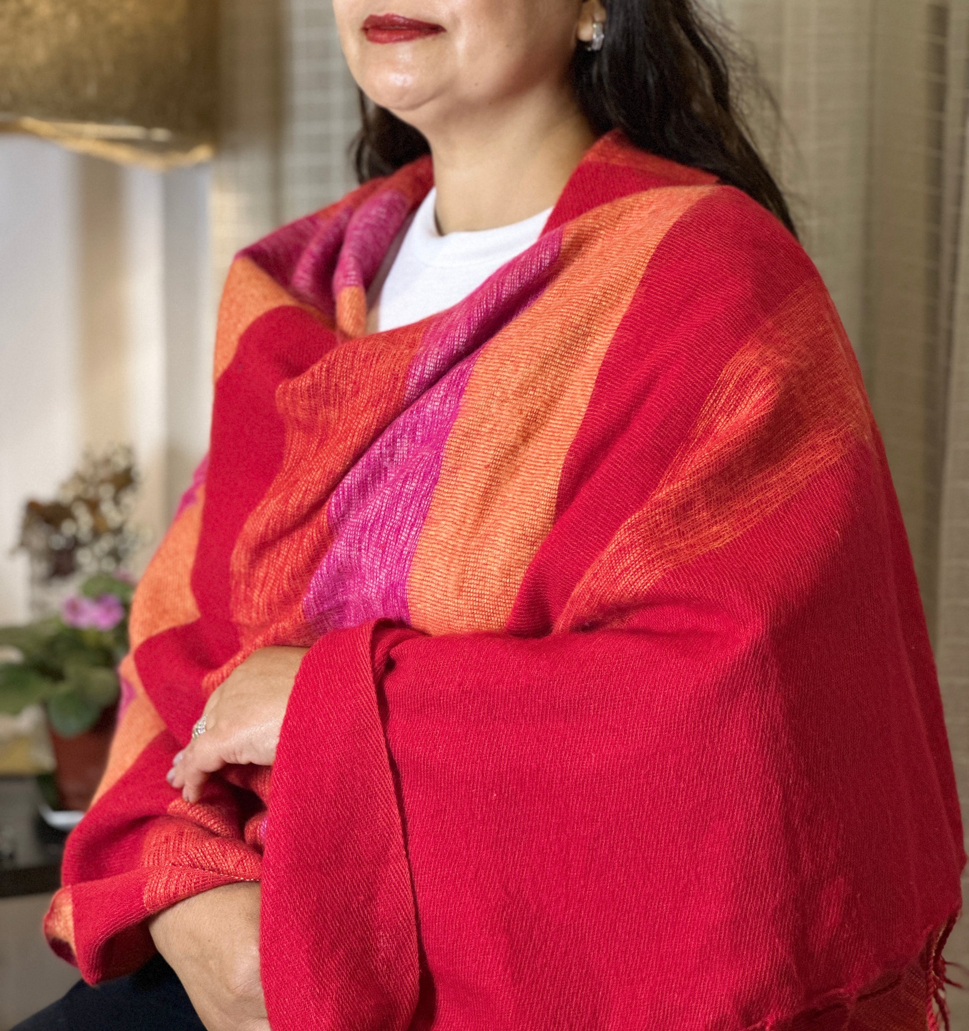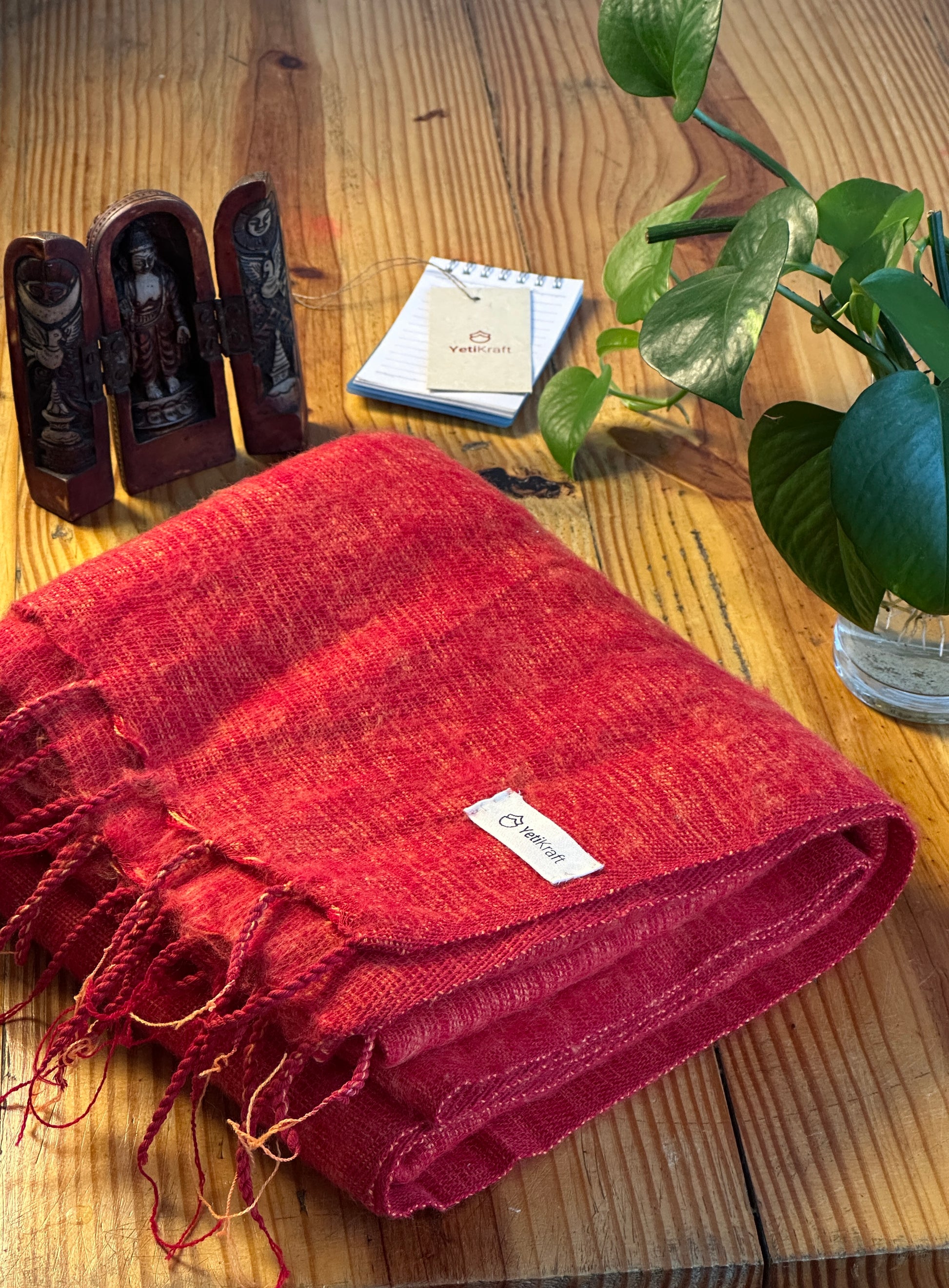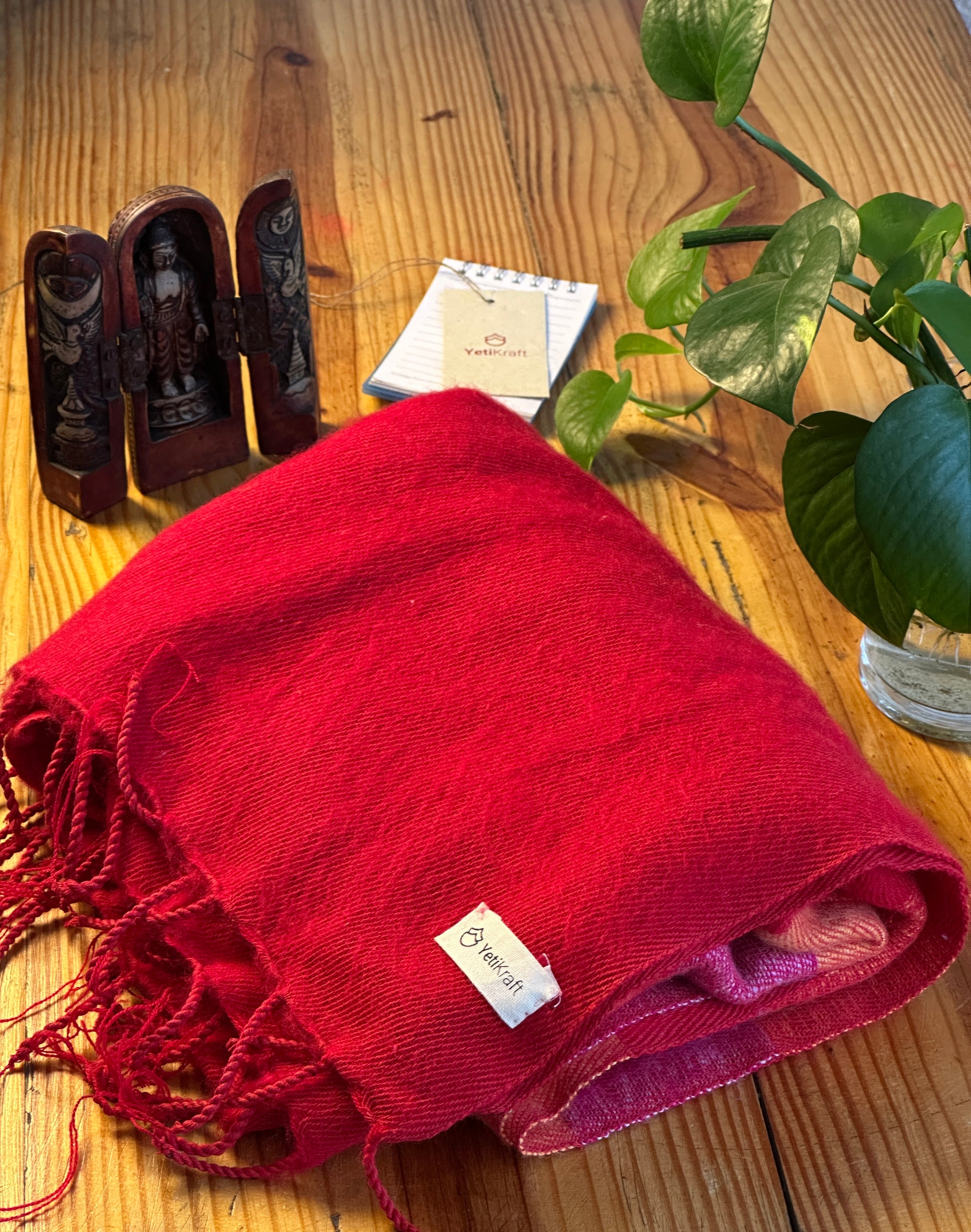 The scarf is made up of Yak wool, a special type of wool found in the underbelly of mountain buffalo. The wool is naturally warm and soft.