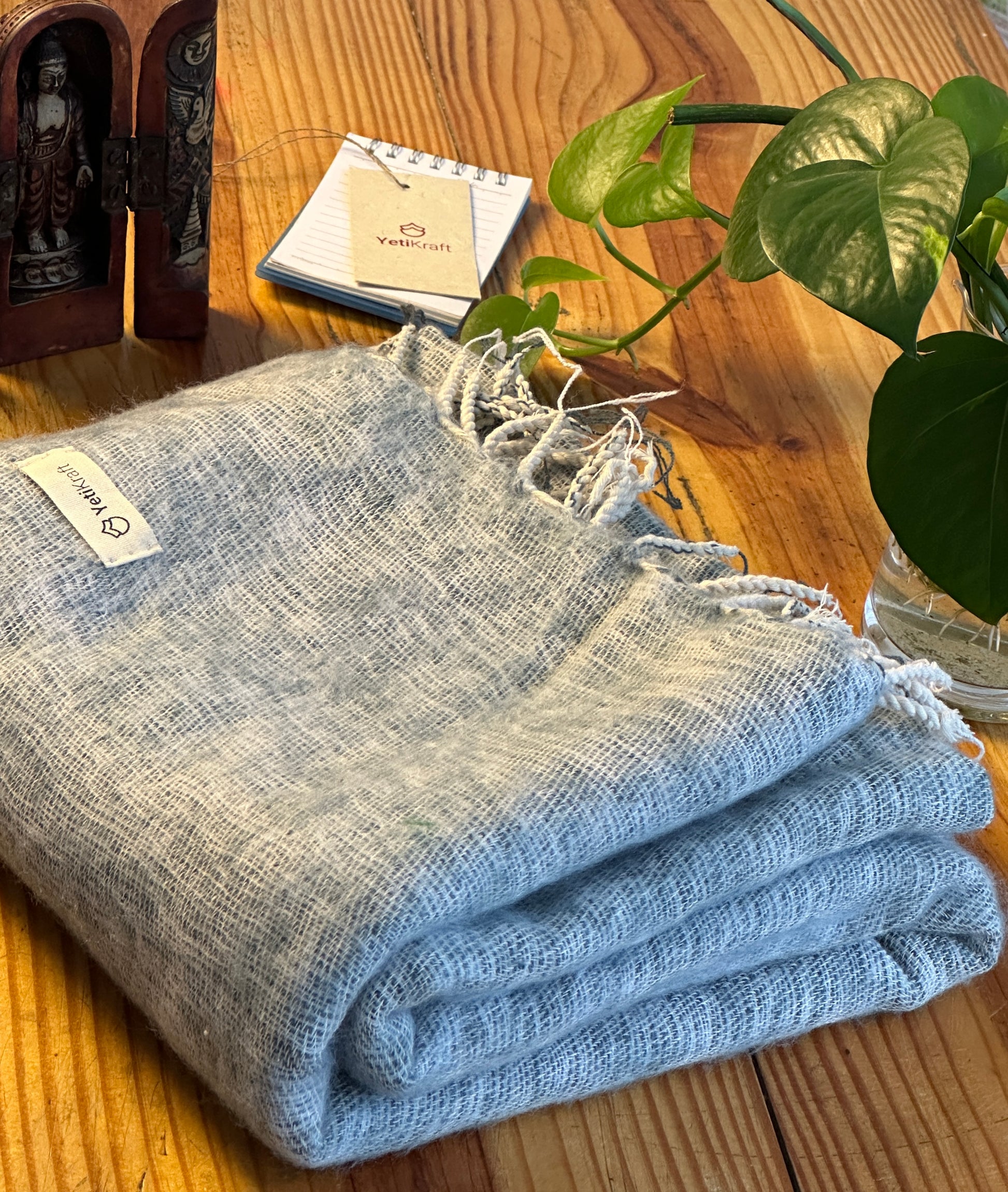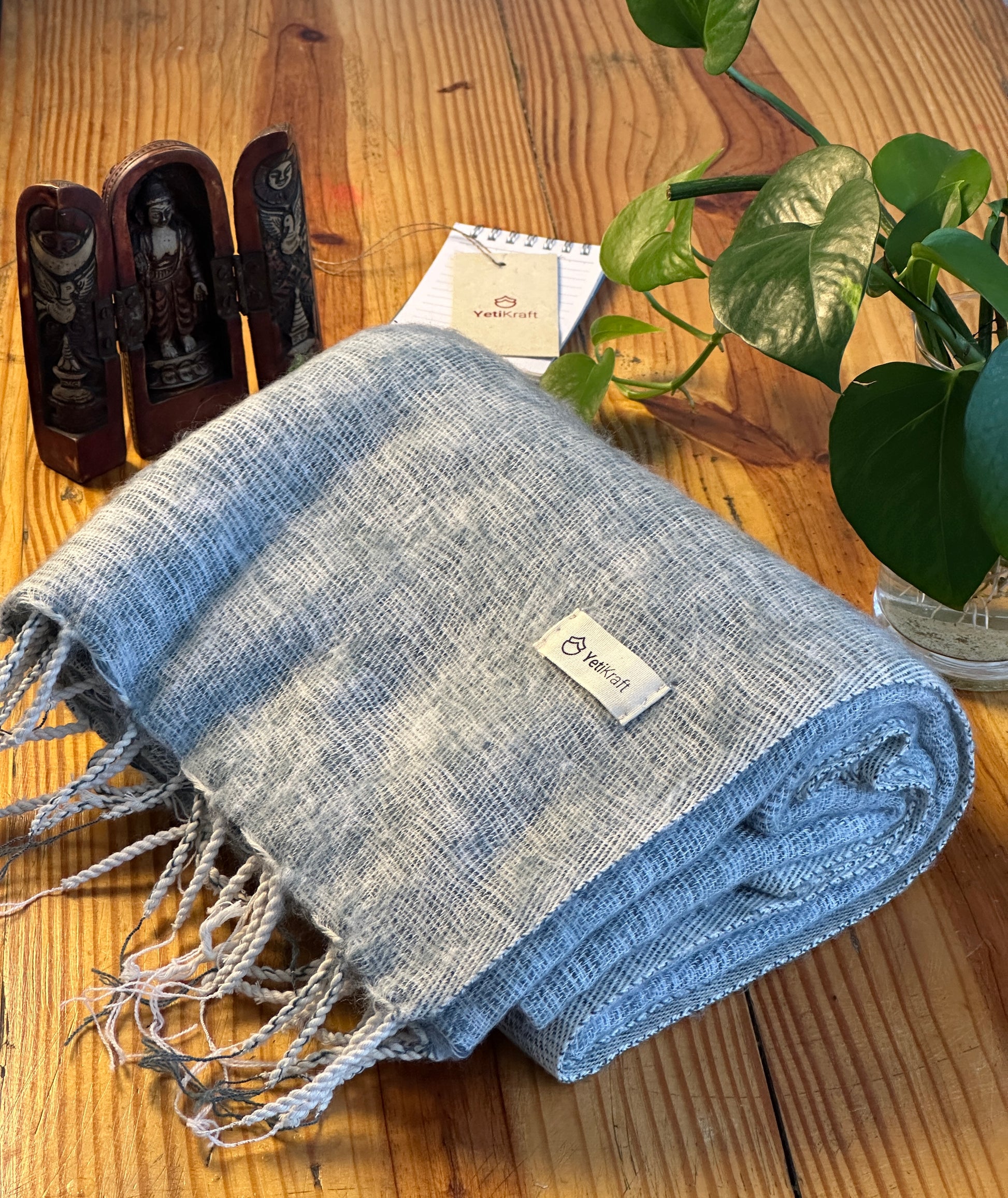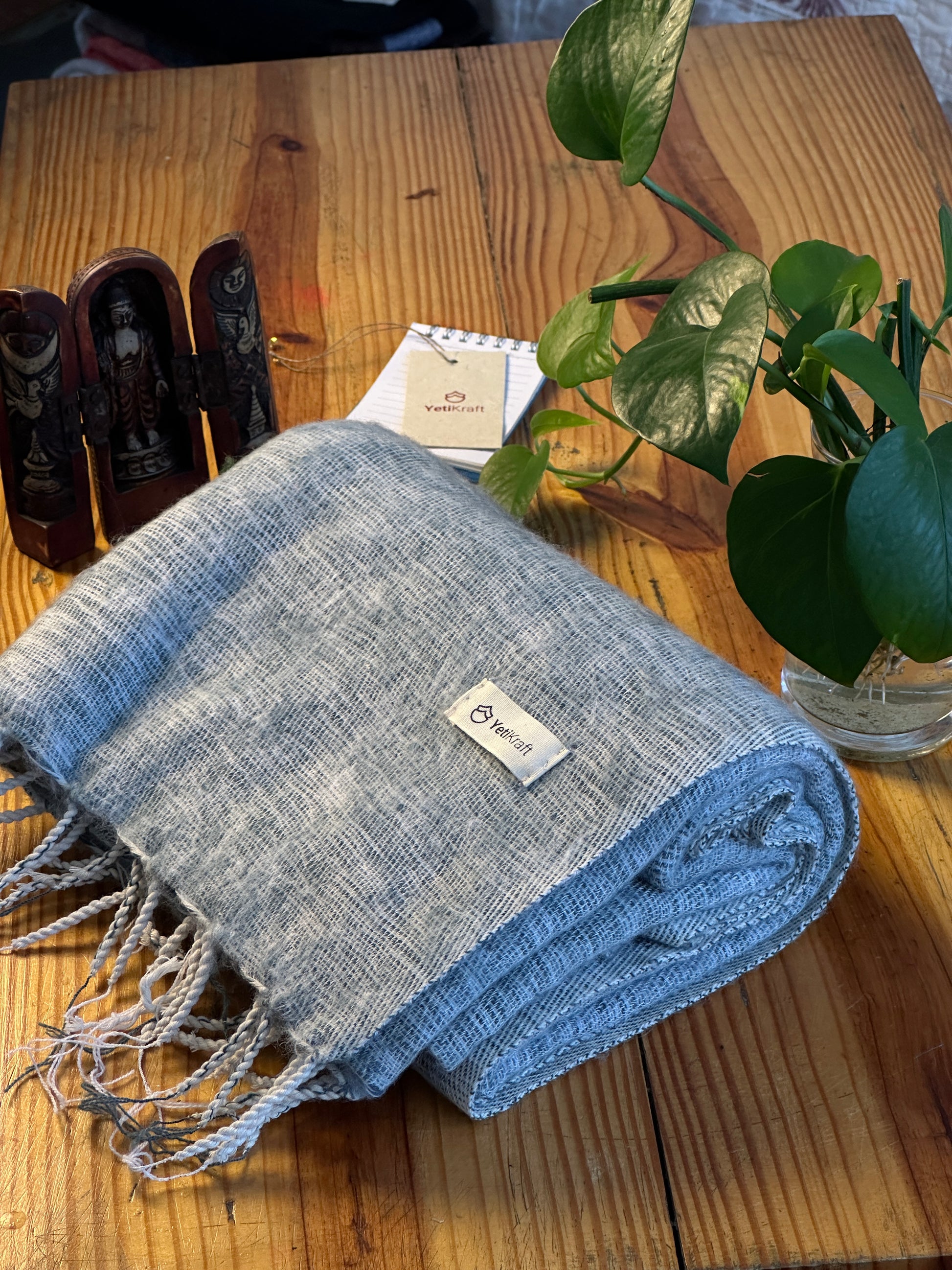 The scarf is made up of Yak wool, a special type of wool found in the underbelly of mountain buffalo. The wool is naturally warm and soft.